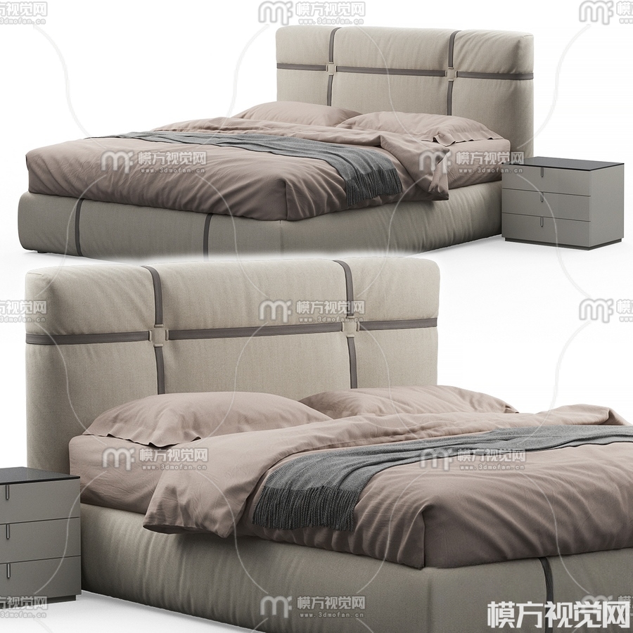 现代双人床3D模型(ID:0016178)