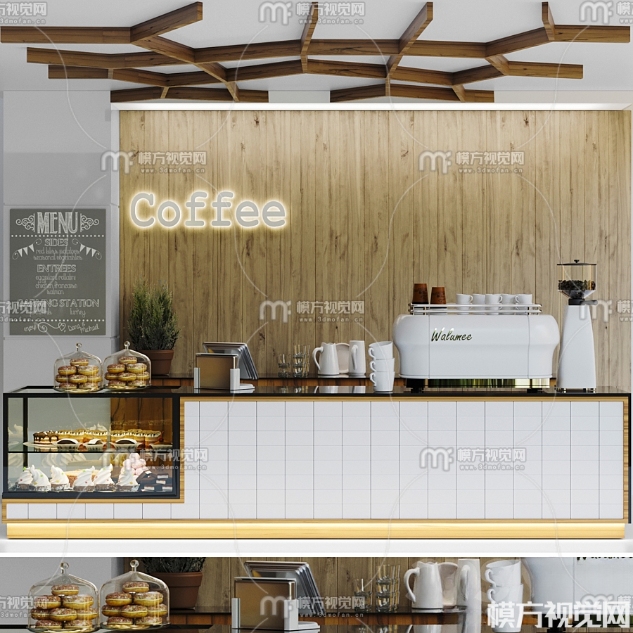 现代咖啡店吧台操作台3D模型(ID:0016197)
