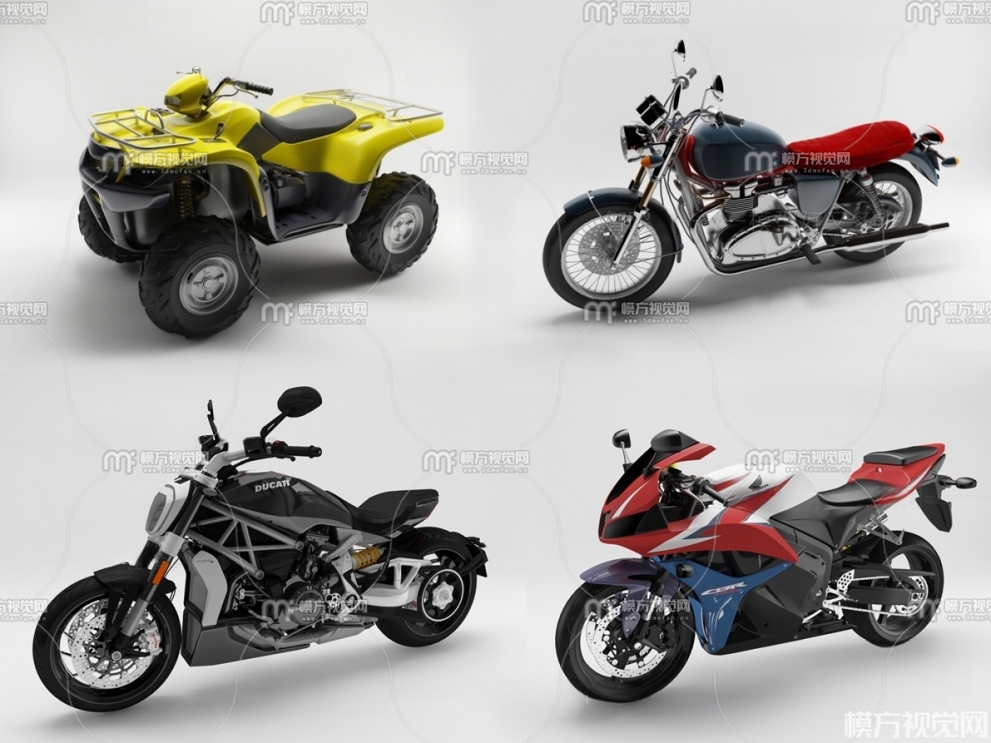 现代摩托车组合3D模型(ID:0001620)