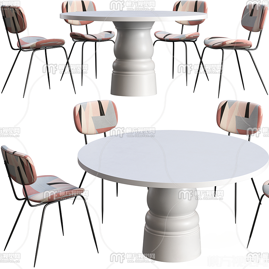 北欧圆形餐桌椅组合3D模型(ID:0016275)