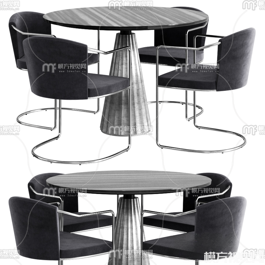 现代圆形餐桌椅组合3D模型(ID:0016314)