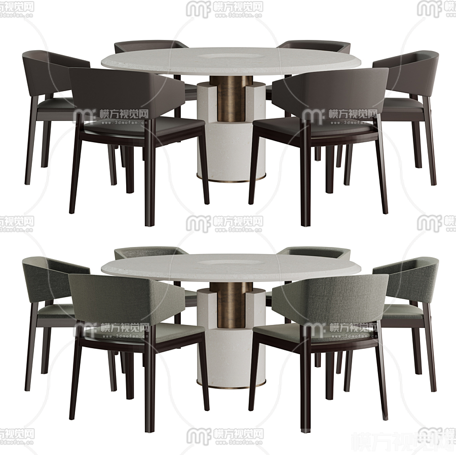 现代圆形餐桌椅组合3D模型(ID:0016322)