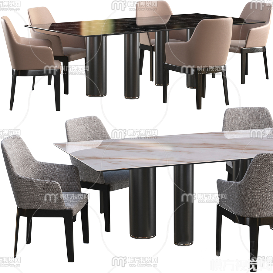 现代大理石餐桌椅3D模型(ID:0016328)