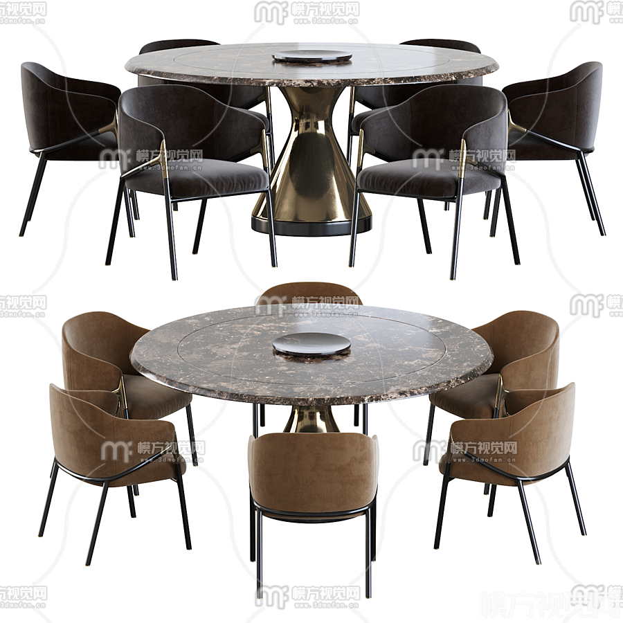 现代大理石圆形餐桌椅3D模型(ID:0016330)