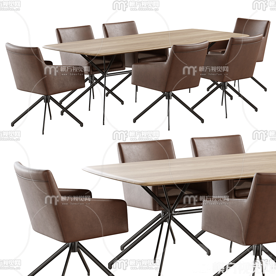 现代实木条形餐桌椅3D模型(ID:0016333)