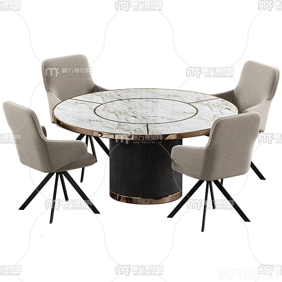 现代圆形大理石餐桌椅3D模型(ID:0016350)