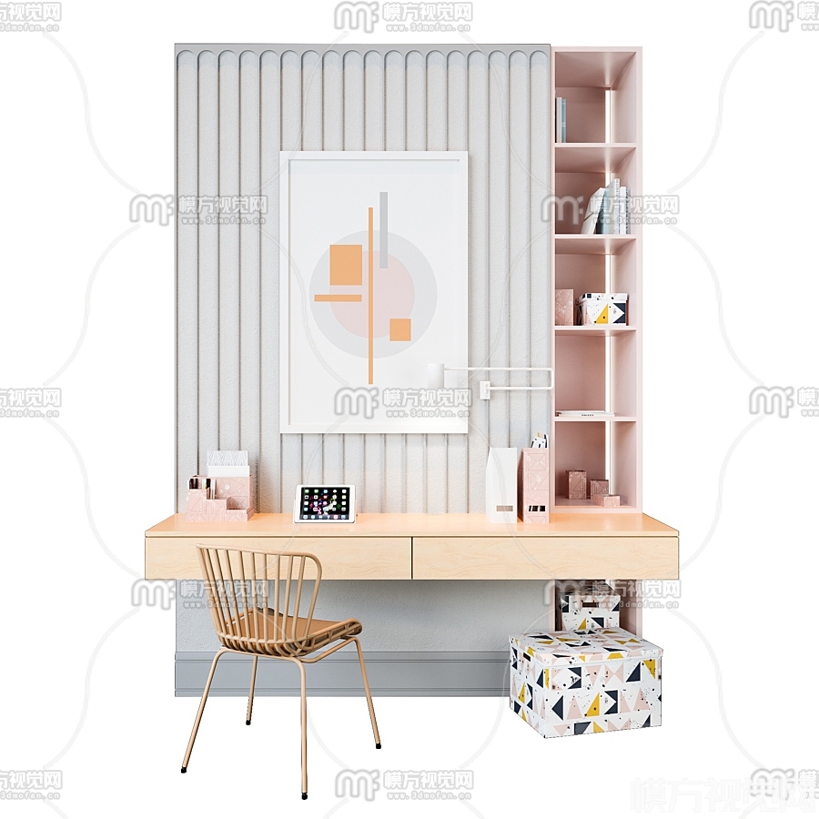 儿童书桌椅 书柜3D模型(ID:0016515)