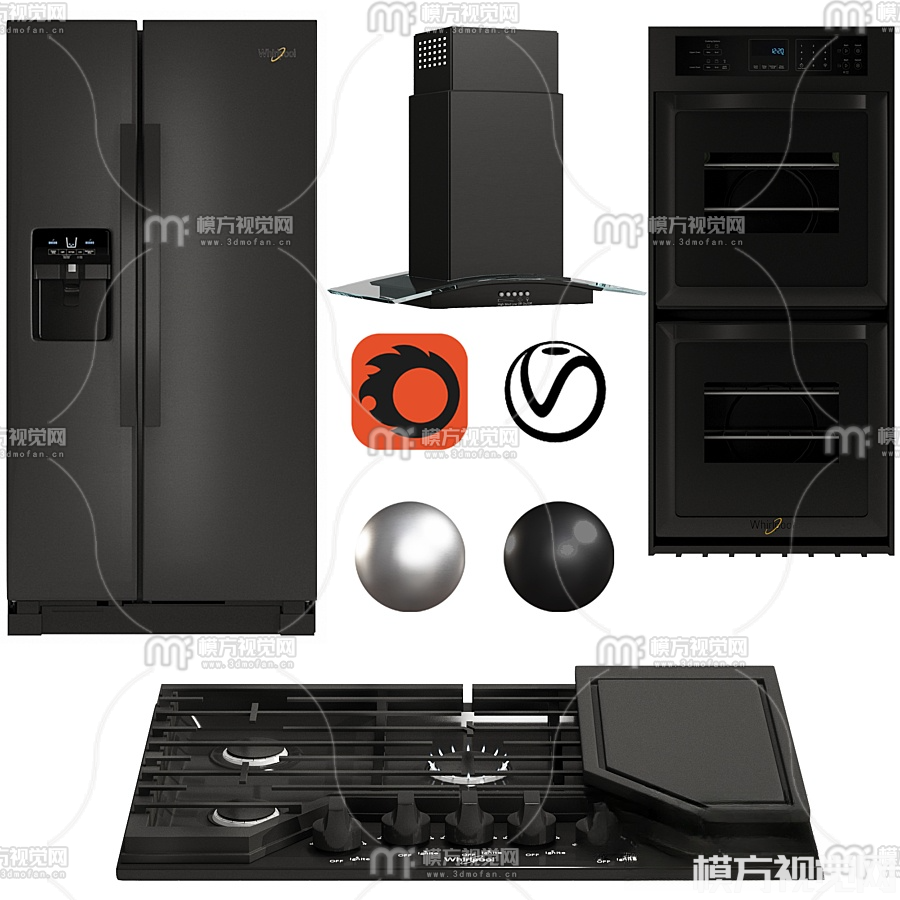 现代烤箱油烟机煤气灶3D模型(ID:0016959)