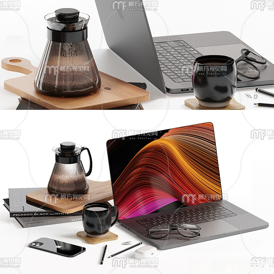 笔记本电脑 手机 咖啡3D模型(ID:0016962)