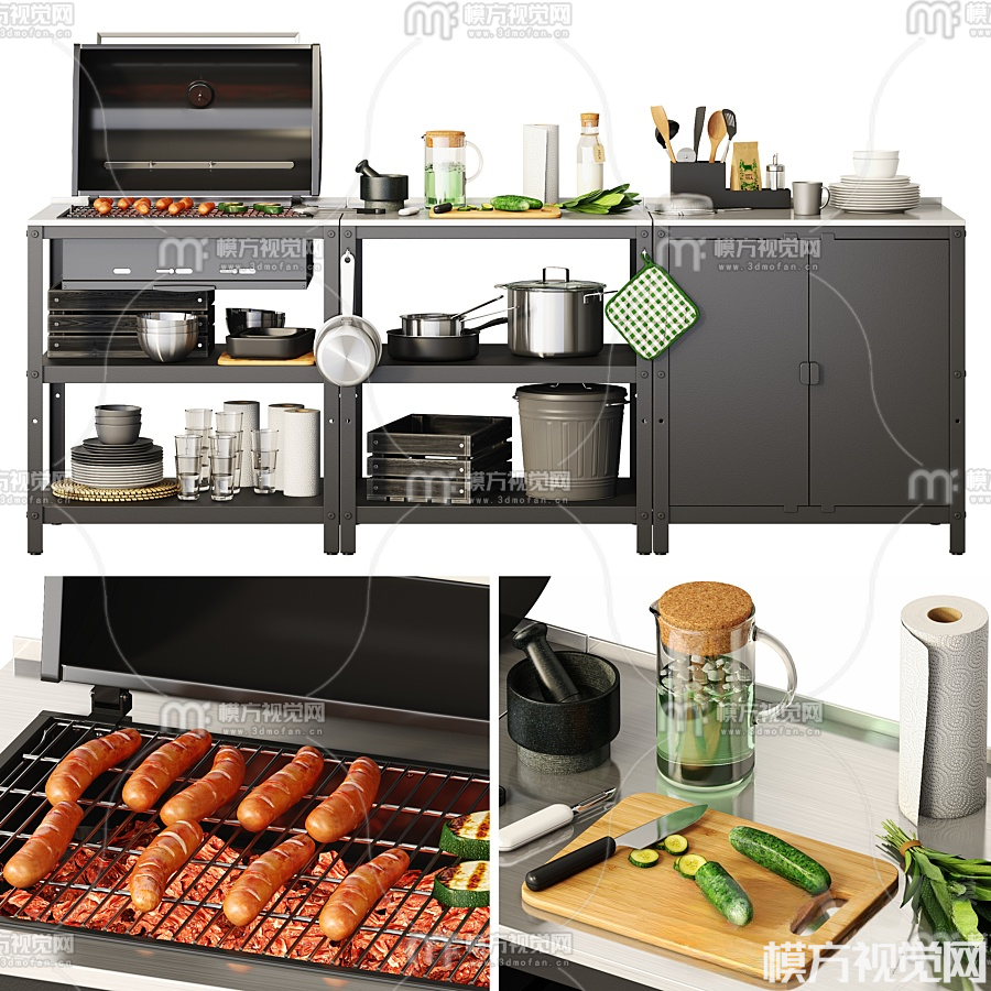 现代烧烤架储物架3D模型(ID:0017095)