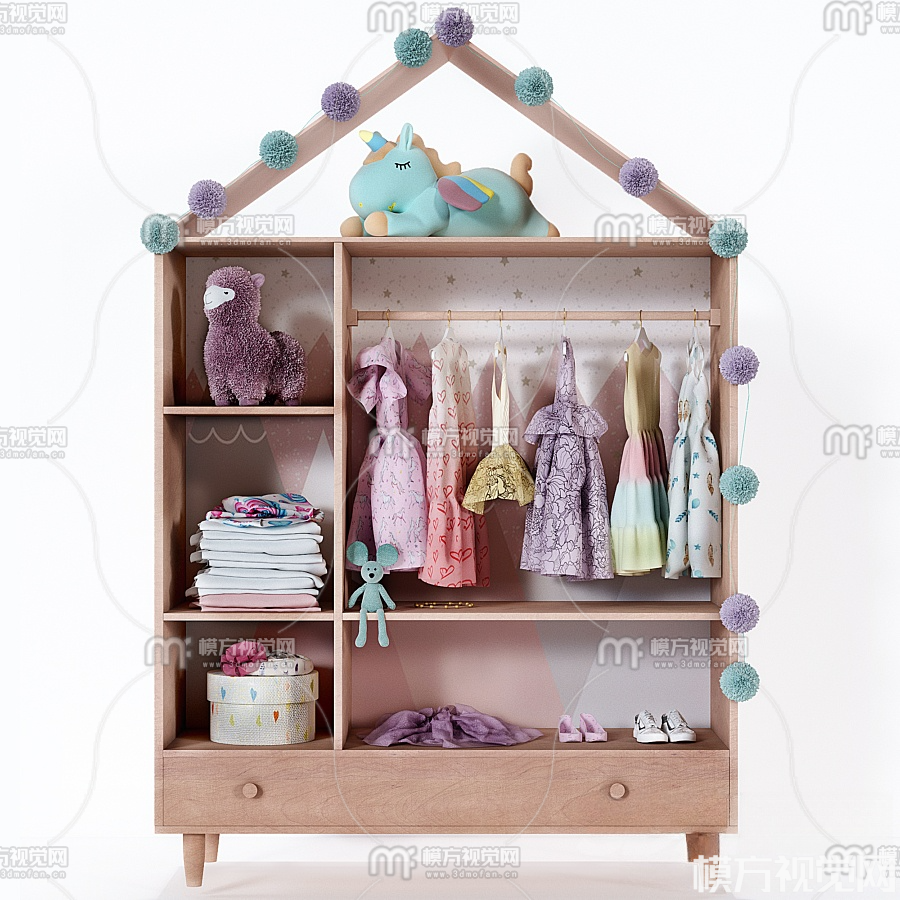北欧实木儿童衣柜3D模型(ID:0017123)