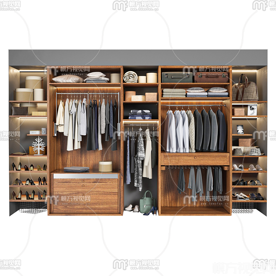 北欧无门衣柜3D模型(ID:0017126)