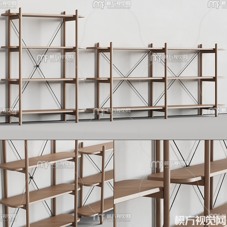 现代实木货架置物架3D模型(ID:0017143)