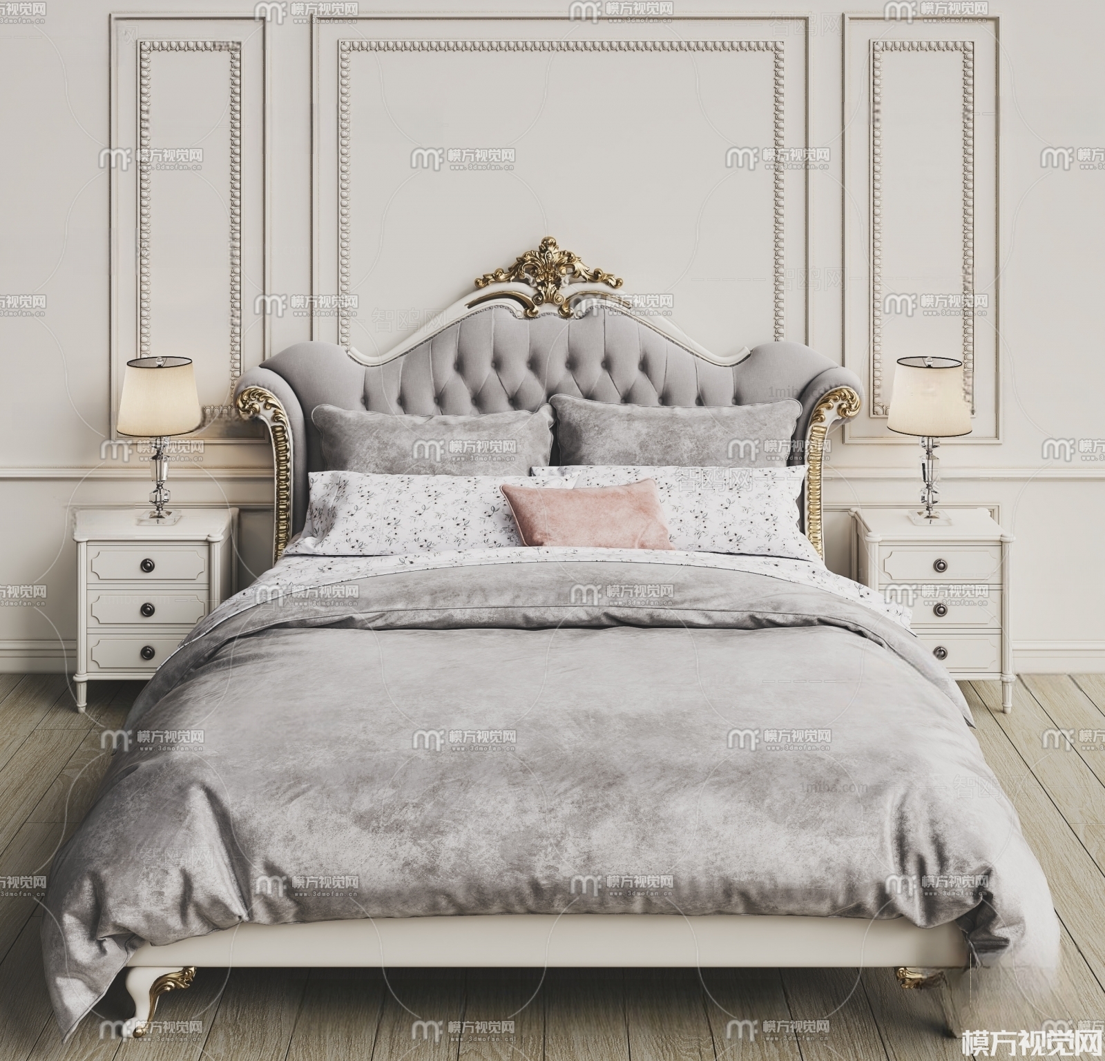 简欧双人床3D模型(ID:0001719)