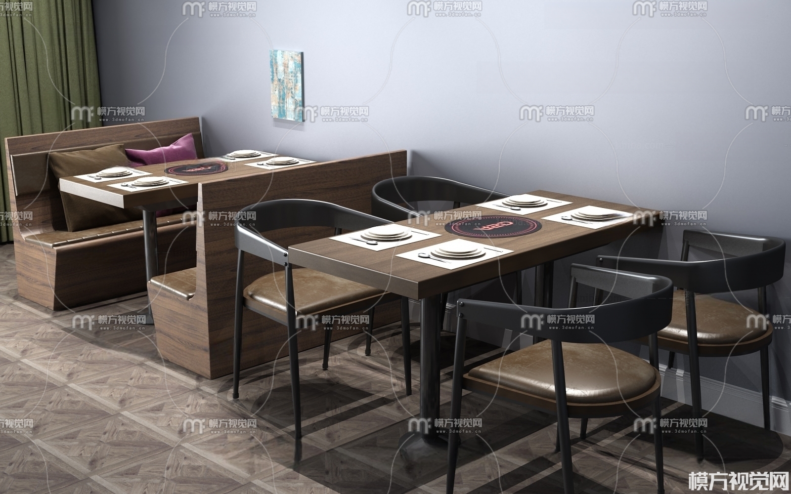 新中式餐桌椅 卡座组合3D模型(ID:0001732)