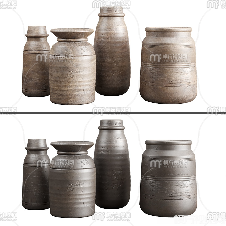 现代陶罐器皿摆件3D模型(ID:0017411)