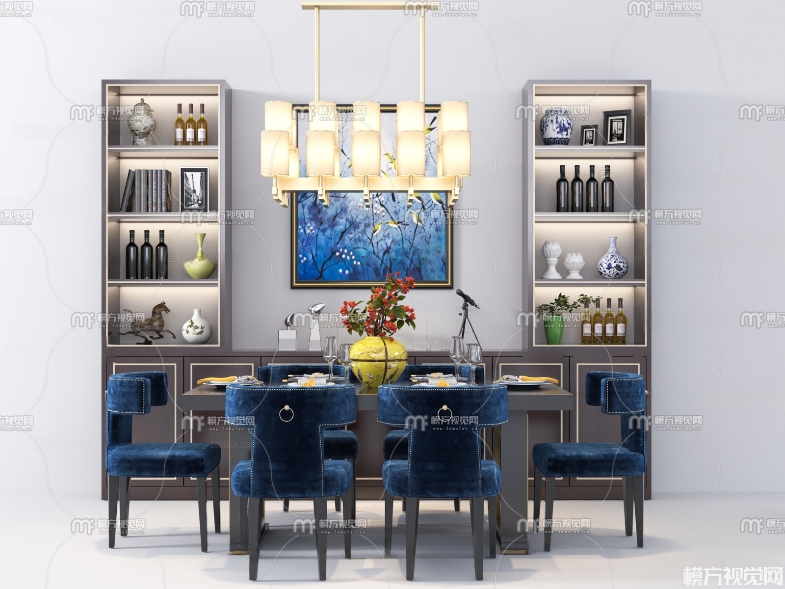 现代餐桌椅 吊灯3D模型(ID:0001742)