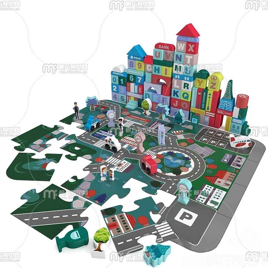 现代儿童积木玩具3D模型(ID:0017457)