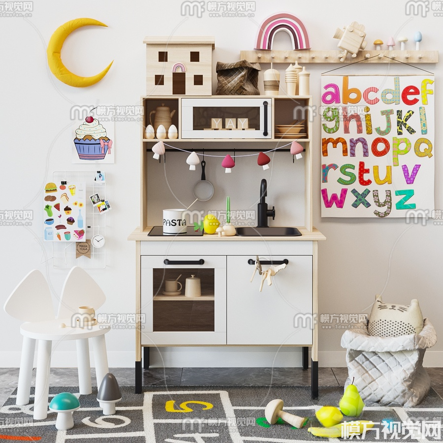 现代儿童玩具橱柜3D模型(ID:0017463)