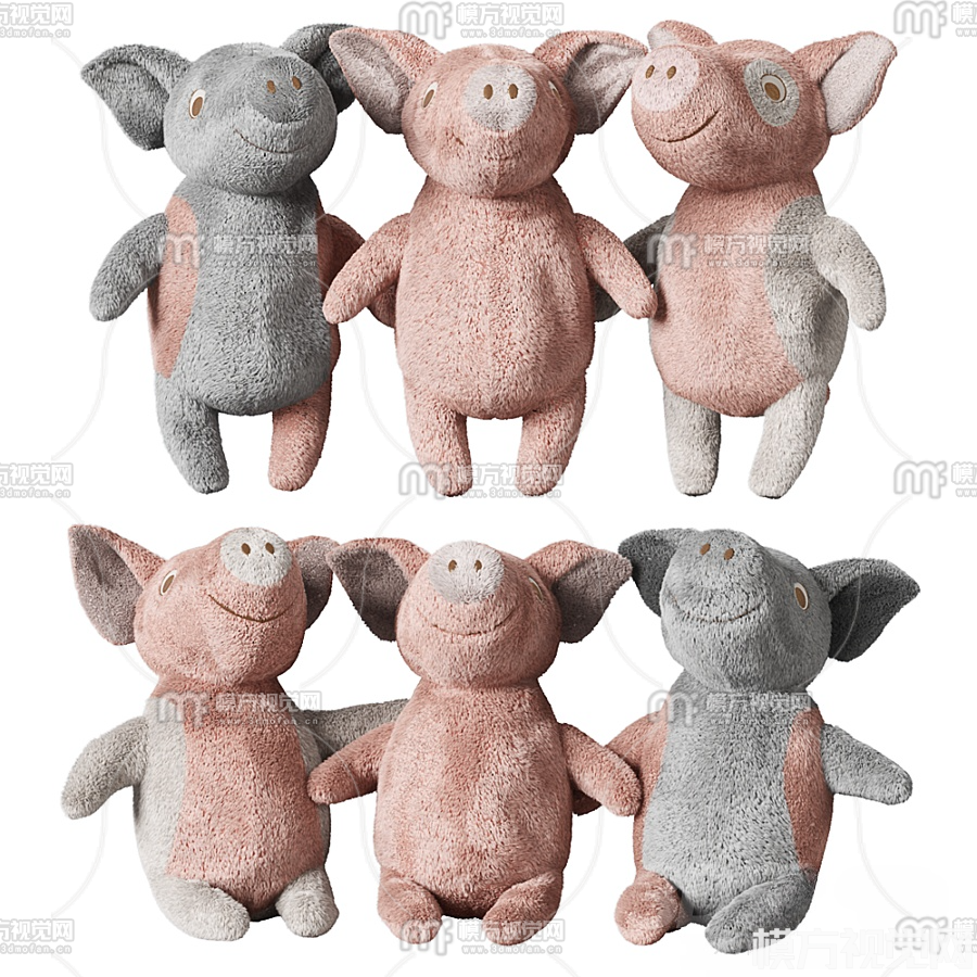 现代毛绒小猪玩具3D模型(ID:0017482)