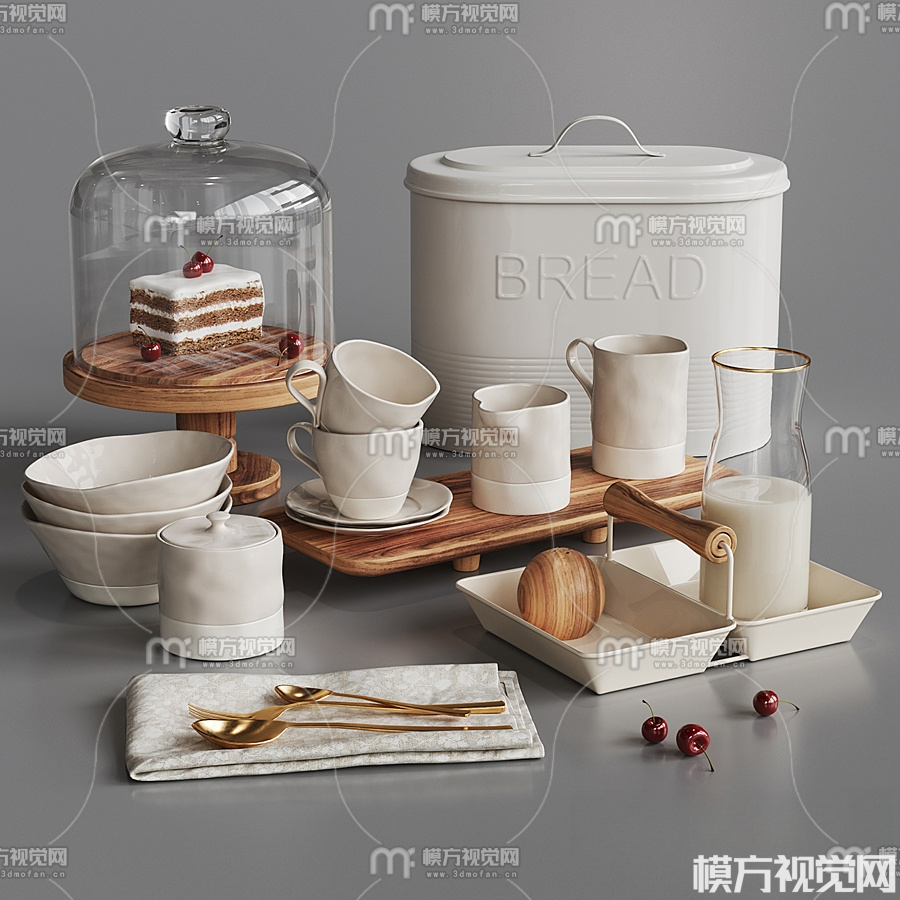 杯子 餐具 甜品组合3D模型(ID:0017522)