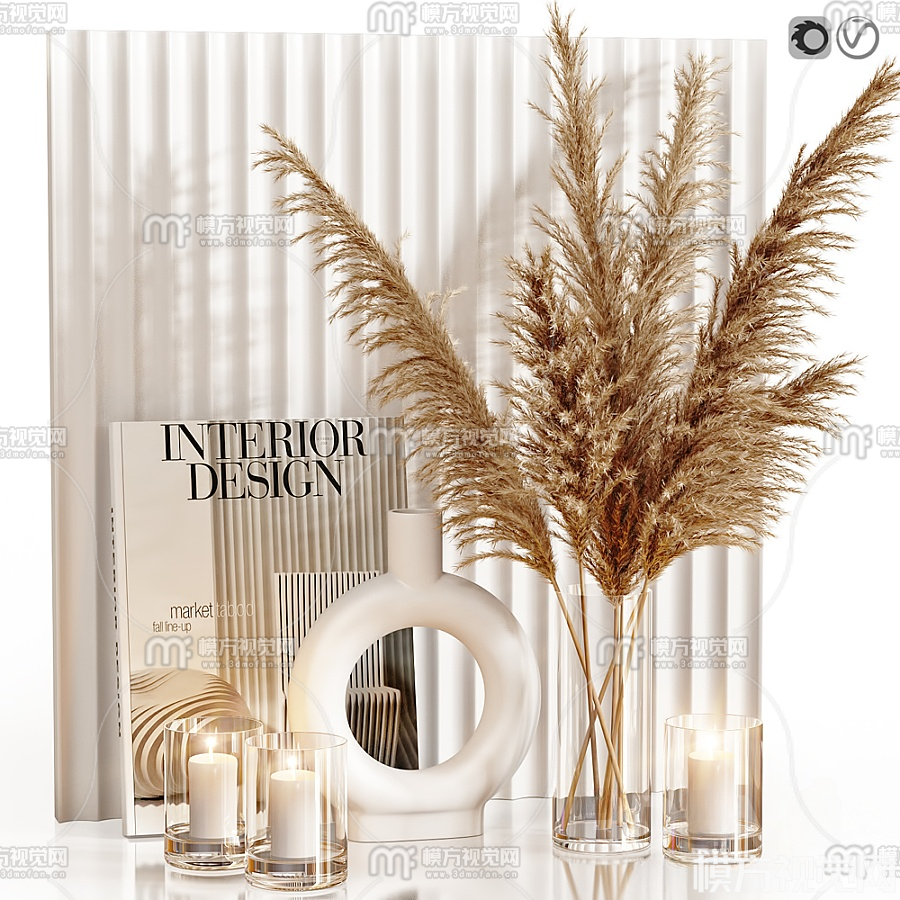 北欧芦苇花瓶书籍摆件3D模型(ID:0017530)