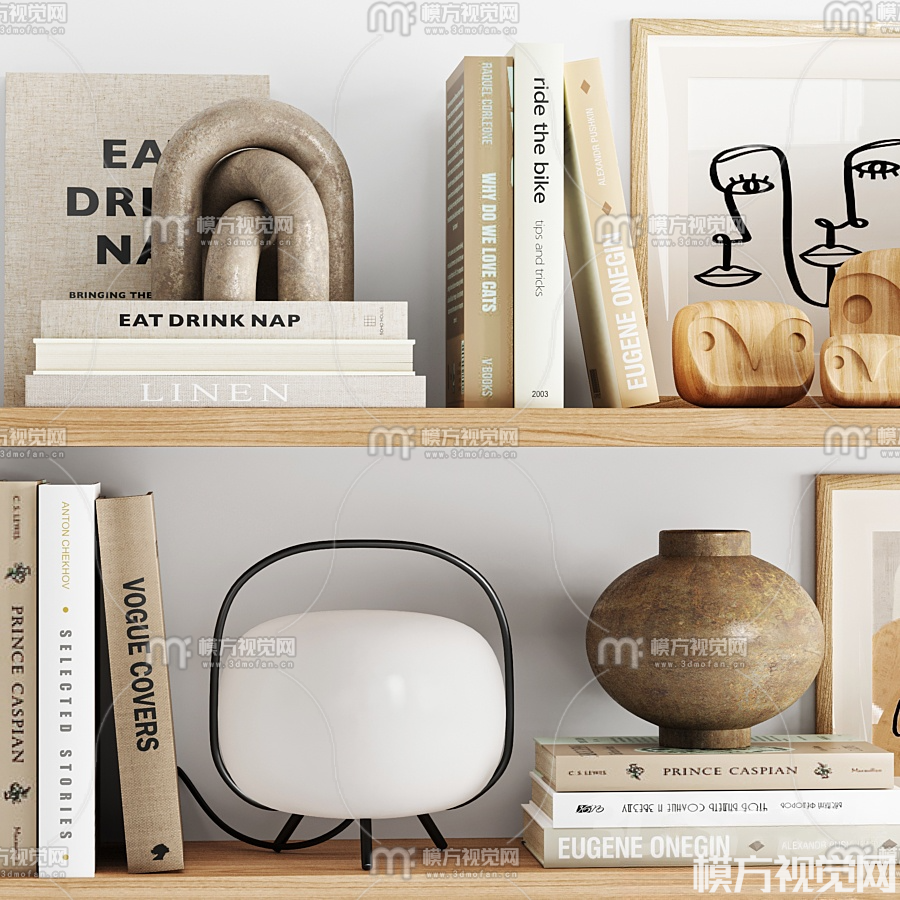 北欧台灯陶罐书籍摆件3D模型(ID:0017535)