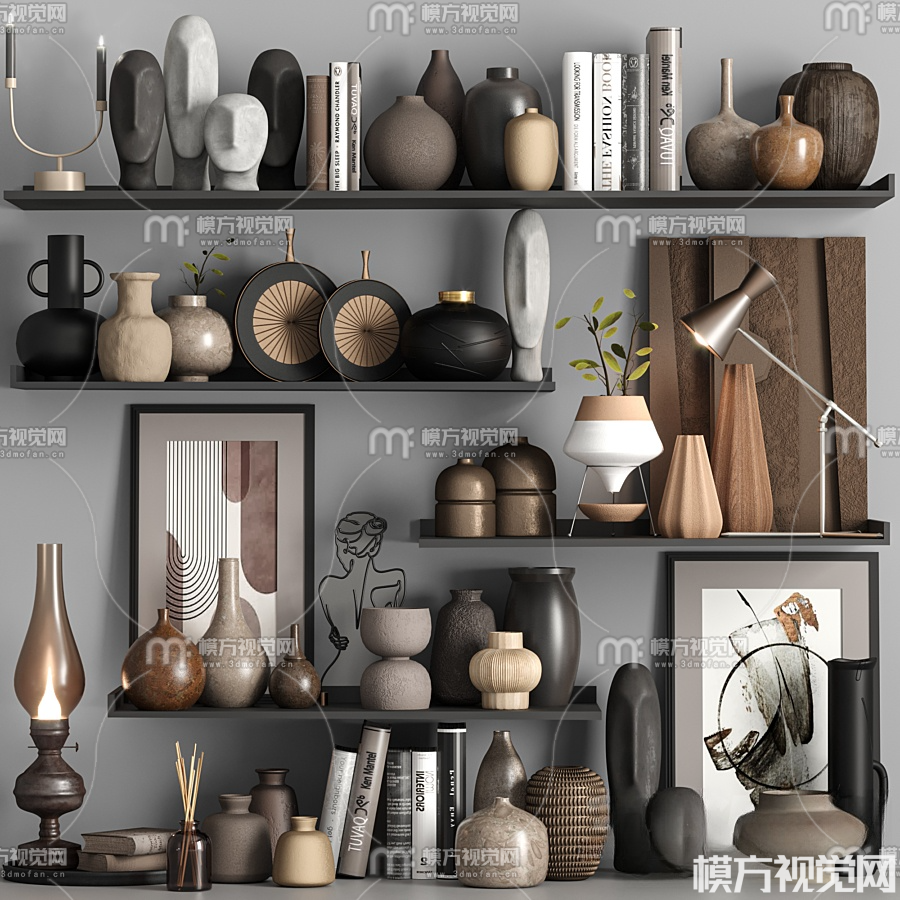 北欧陶罐花瓶雕塑饰品摆件3D模型(ID:0017536)
