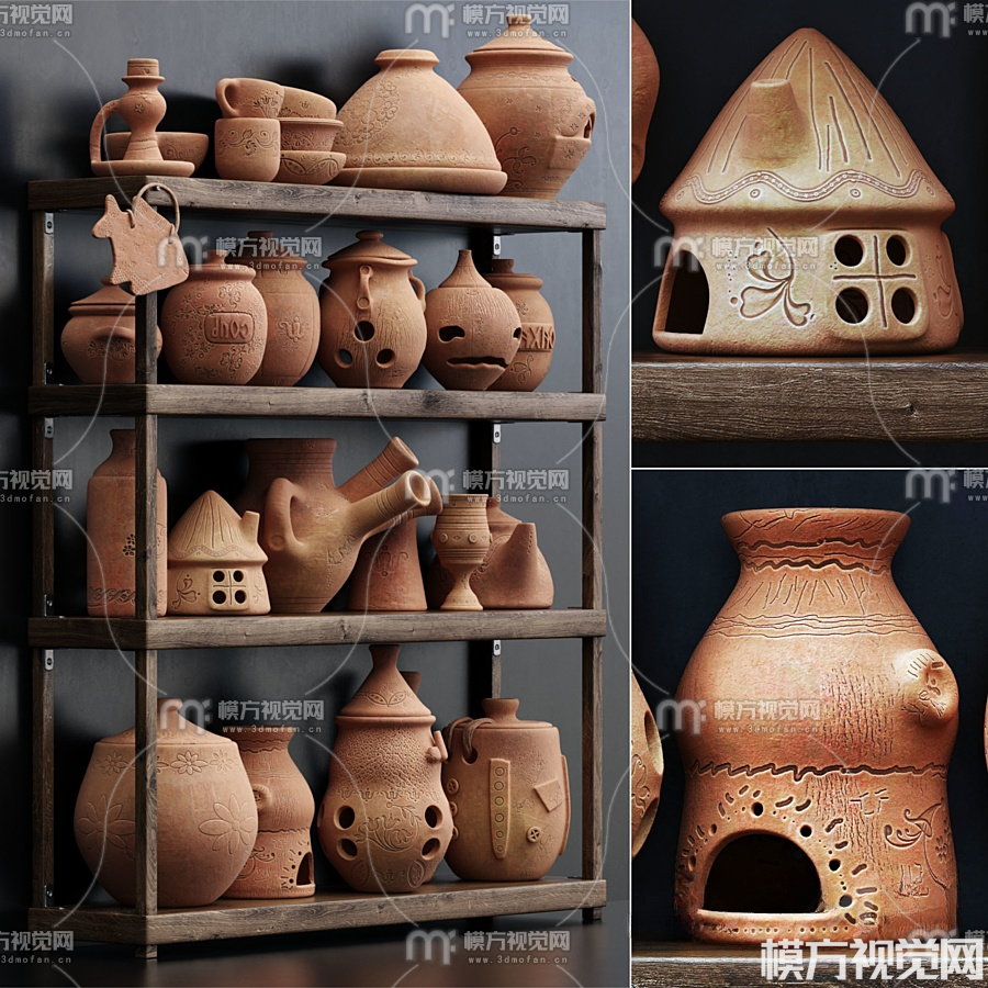 北欧陶罐器皿摆件3D模型(ID:0017537)