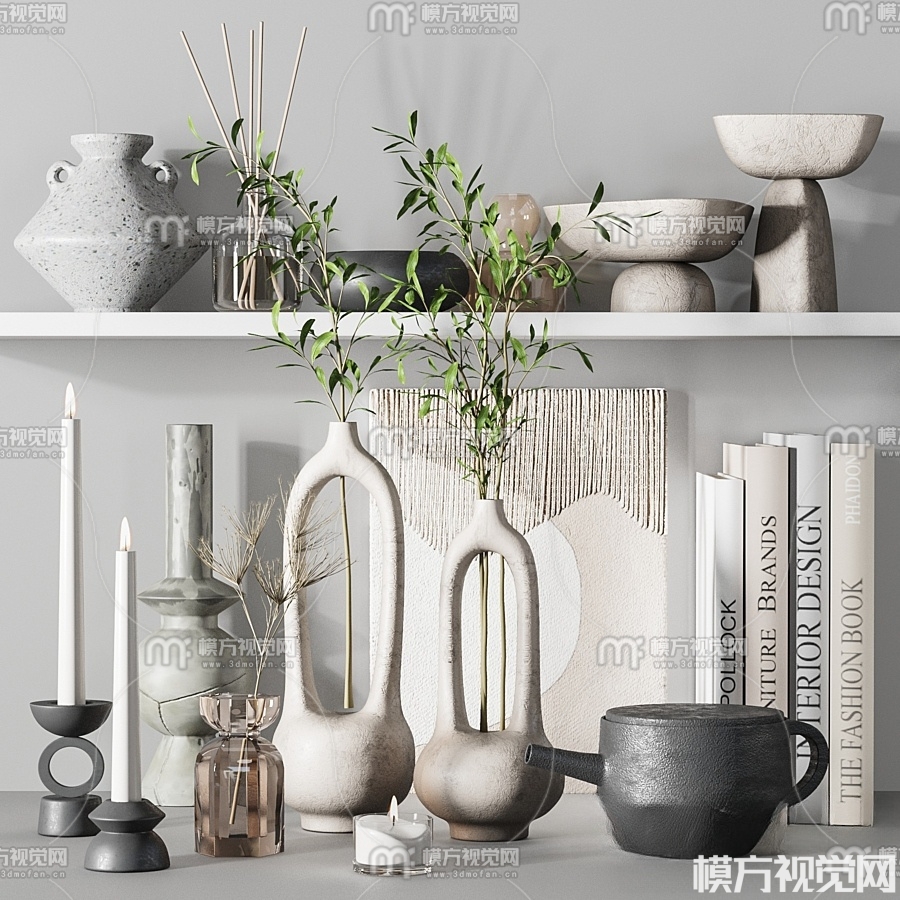 侘寂风书籍饰品摆件3D模型(ID:0017567)