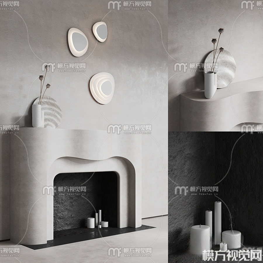 侘寂风水泥壁炉3D模型(ID:0017568)