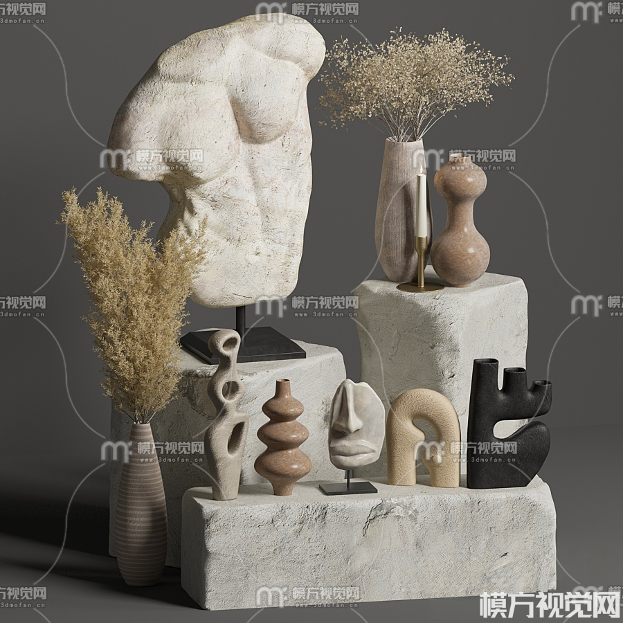 侘寂花瓶饰品摆件3D模型(ID:0017575)