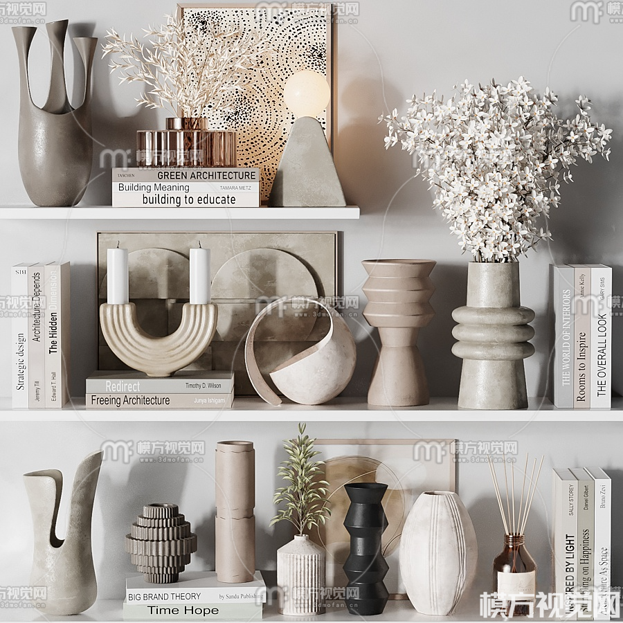 侘寂书籍花瓶饰品摆件3D模型(ID:0017583)