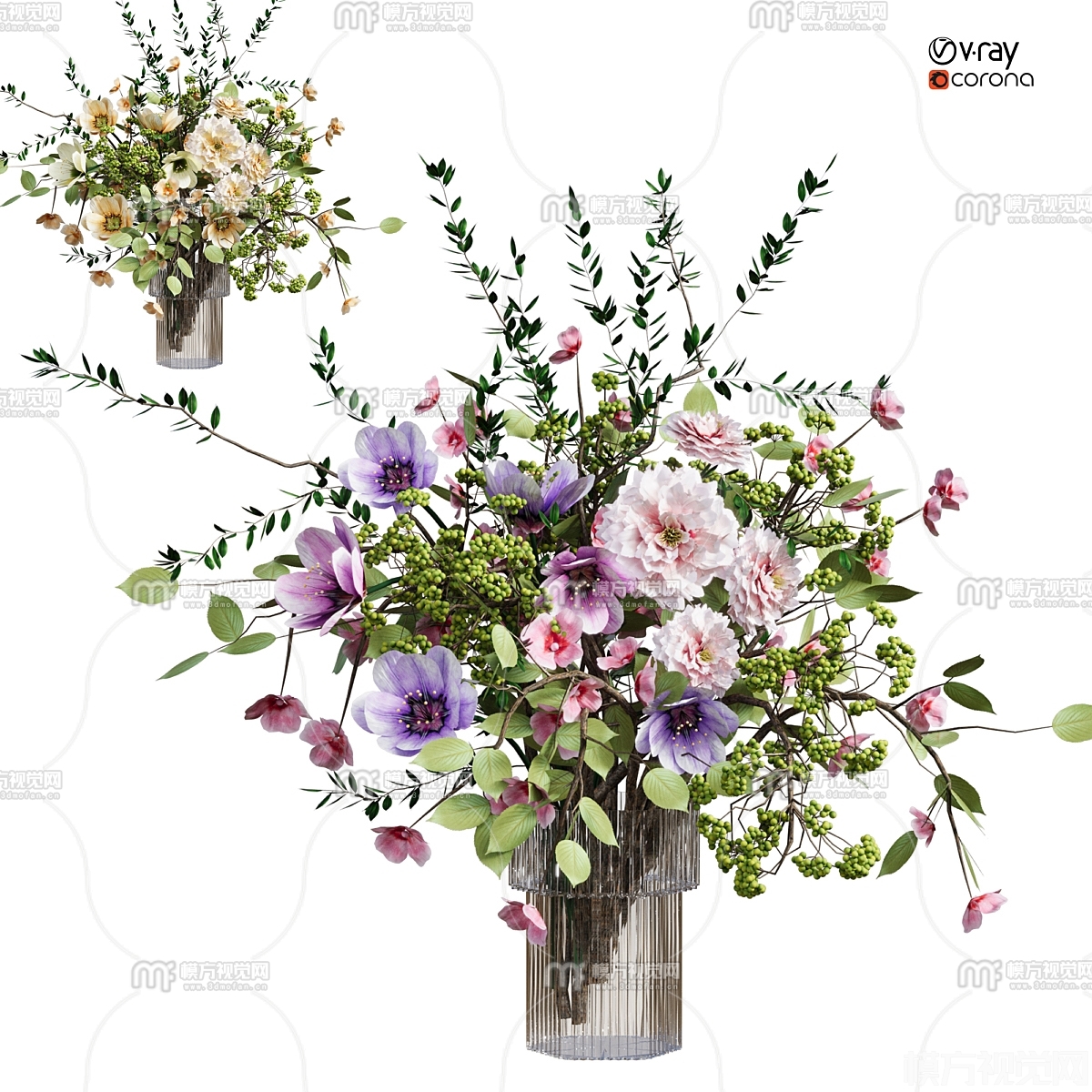 花瓶 花艺 鲜花 插花3D模型(ID:0017610)