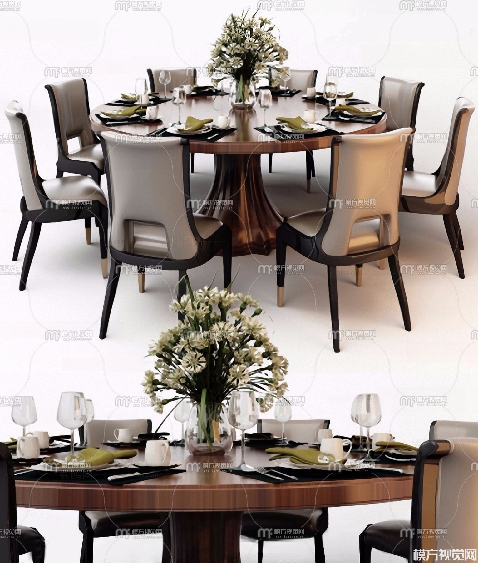 现代圆形餐桌椅组合3D模型(ID:0001768)
