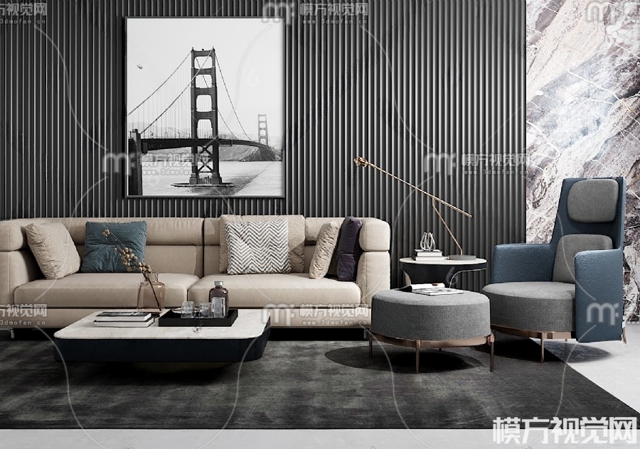 现代沙发茶几组合3D模型(ID:0001772)