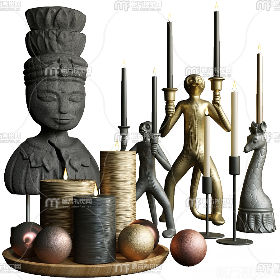现代埃及烛台灯法老雕塑摆件3D模型(ID:0017756)