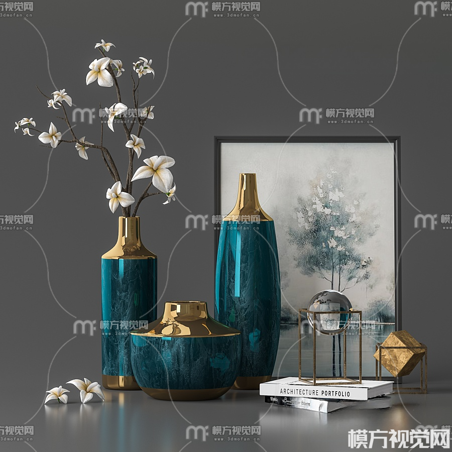 现代白玉兰花瓶摆件3D模型(ID:0017759)