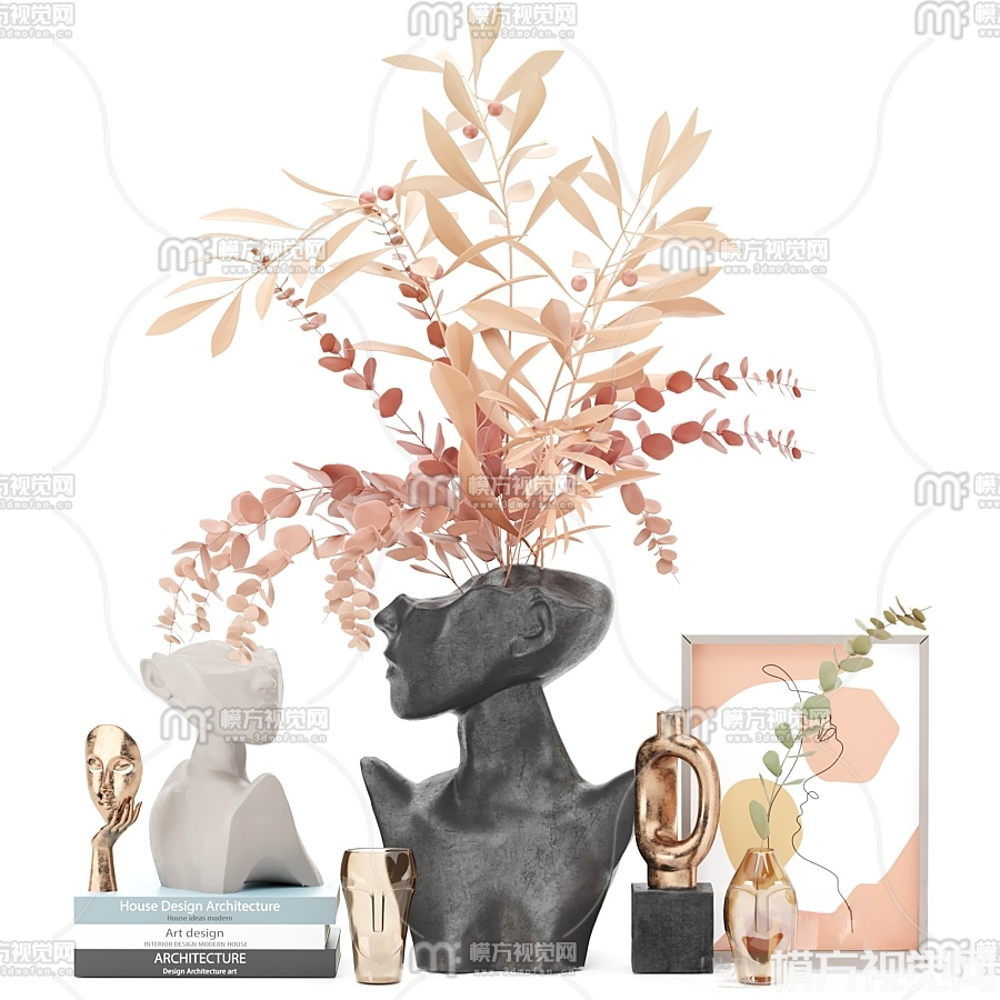 现代插花书籍饰品摆件3D模型(ID:0017781)