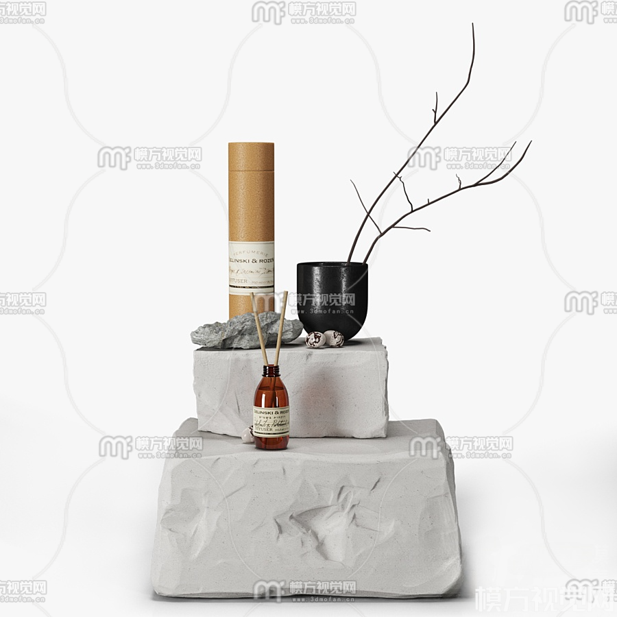 现代干枝花瓶烛台灯书籍摆件3D模型(ID:0017827)
