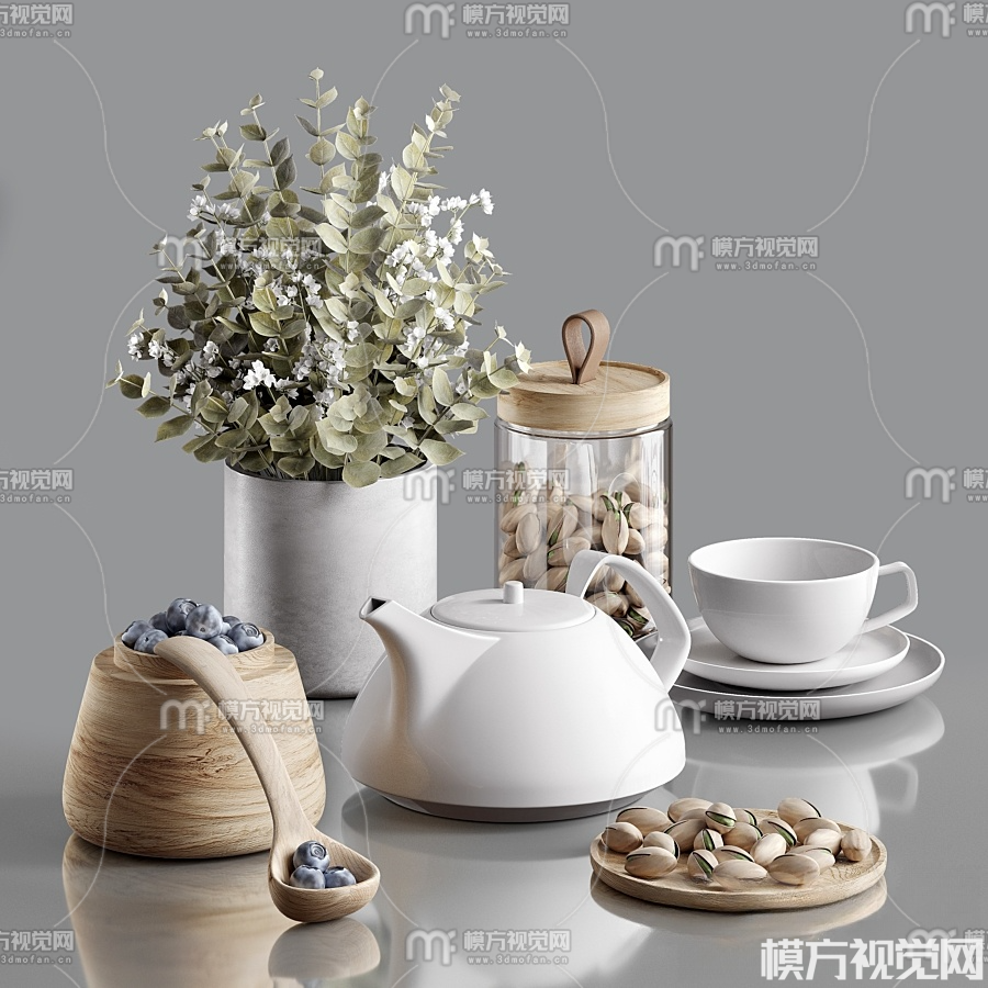现代花瓶茶壶蓝莓开心果3D模型(ID:0017830)