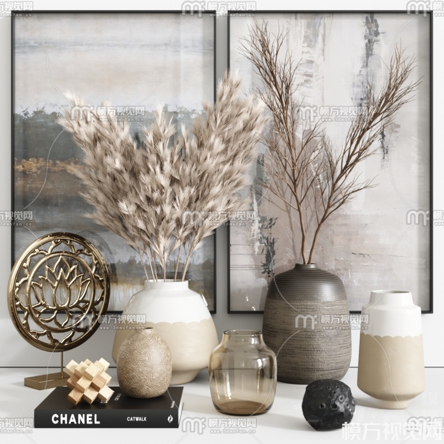 现代花瓶书籍摆件3D模型(ID:0017867)