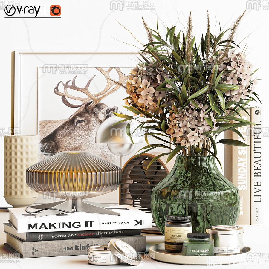 现代花瓶书籍化妆品摆件3D模型(ID:0017871)