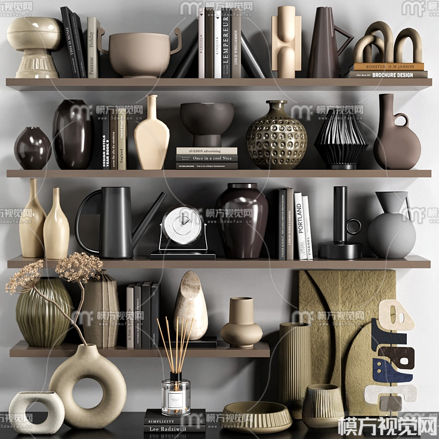 现代花瓶书籍饰品摆件3D模型(ID:0017872)