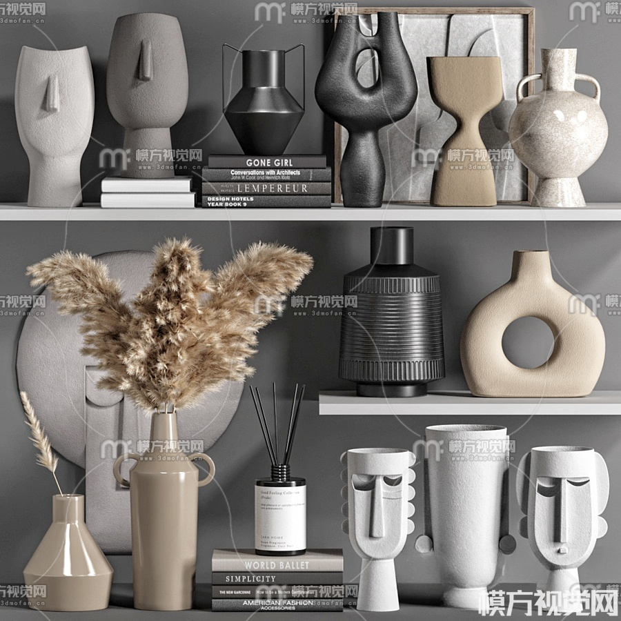 现代花瓶书籍饰品摆件3D模型(ID:0017873)