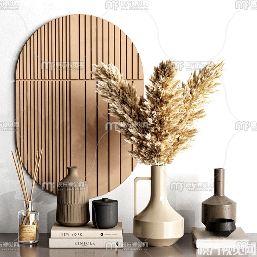 现代花瓶书籍饰品摆件3D模型(ID:0017875)