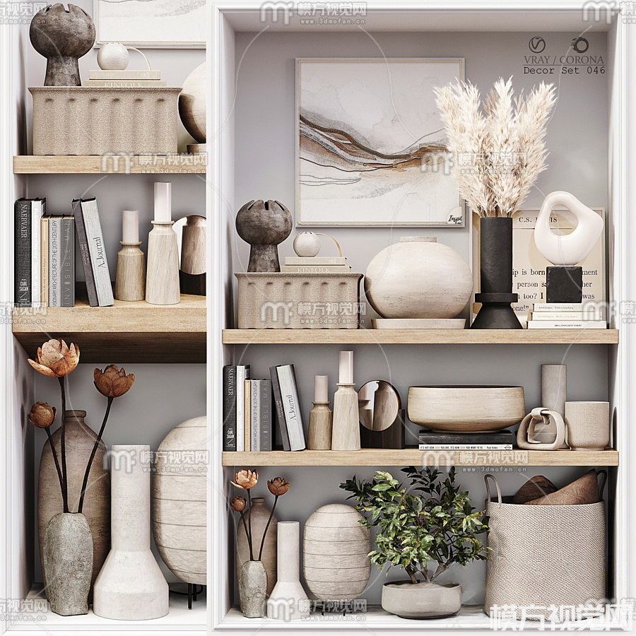 现代花瓶书籍饰品摆件3D模型(ID:0017876)