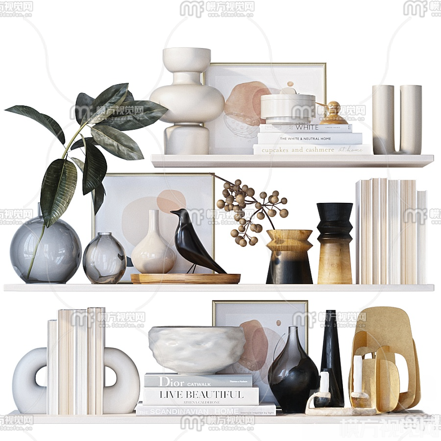 现代花瓶书籍饰品摆件3D模型(ID:0017877)