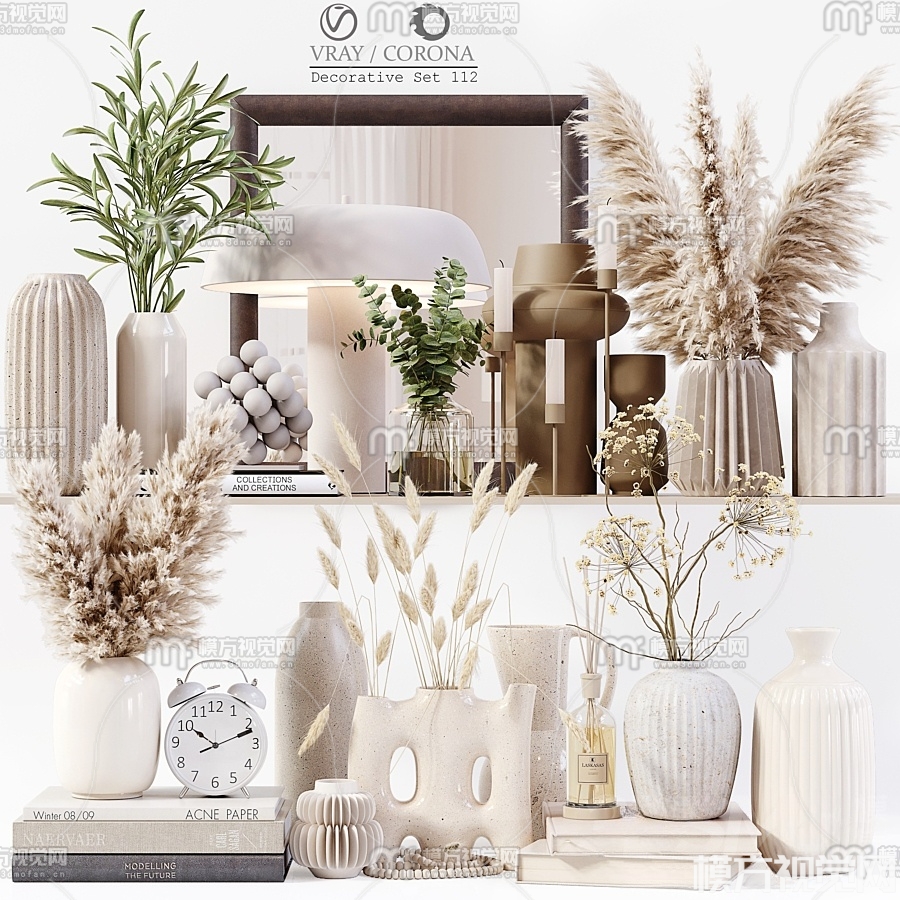 现代花瓶书籍饰品摆件3D模型(ID:0017878)