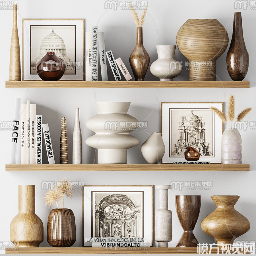 现代花瓶陶罐书籍摆件3D模型(ID:0017881)